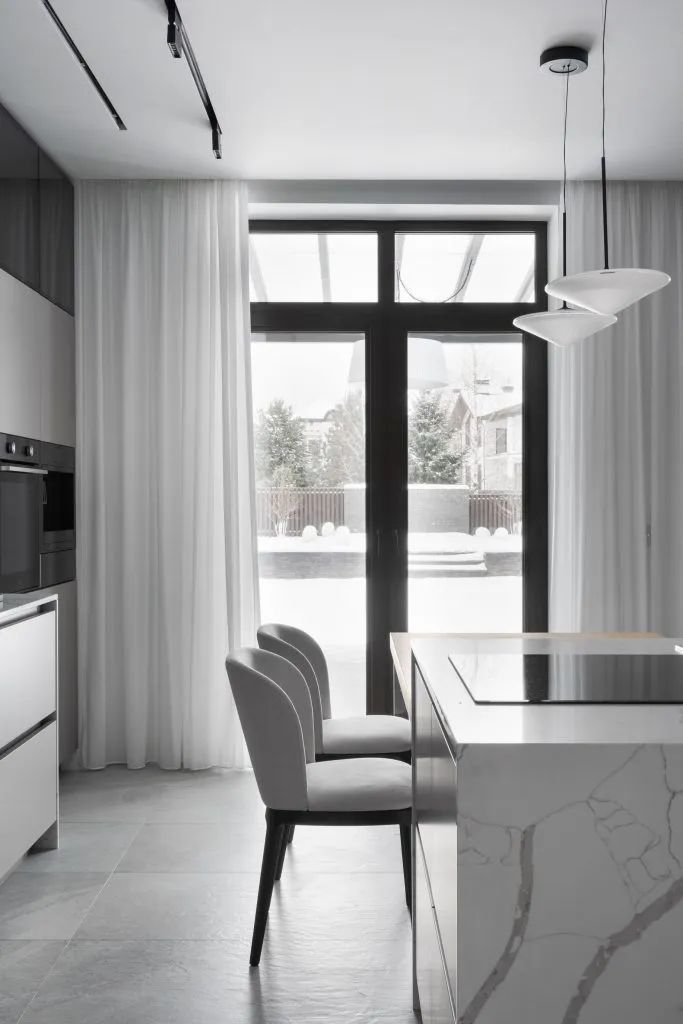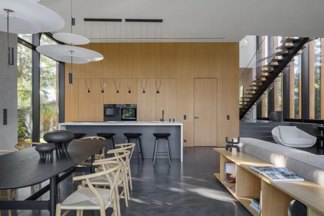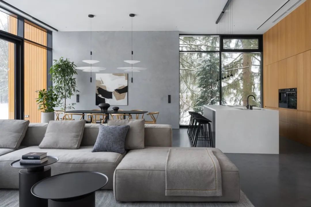 ▎Ana Sergienko的作品,440㎡的乡间别墅,业主但愿以营业样式进行了联想,关心联想的实用性,取得一个亮堂的现代室内荫庇,不错遗弃现代艺术。并相配关心联想处理决议的实用性