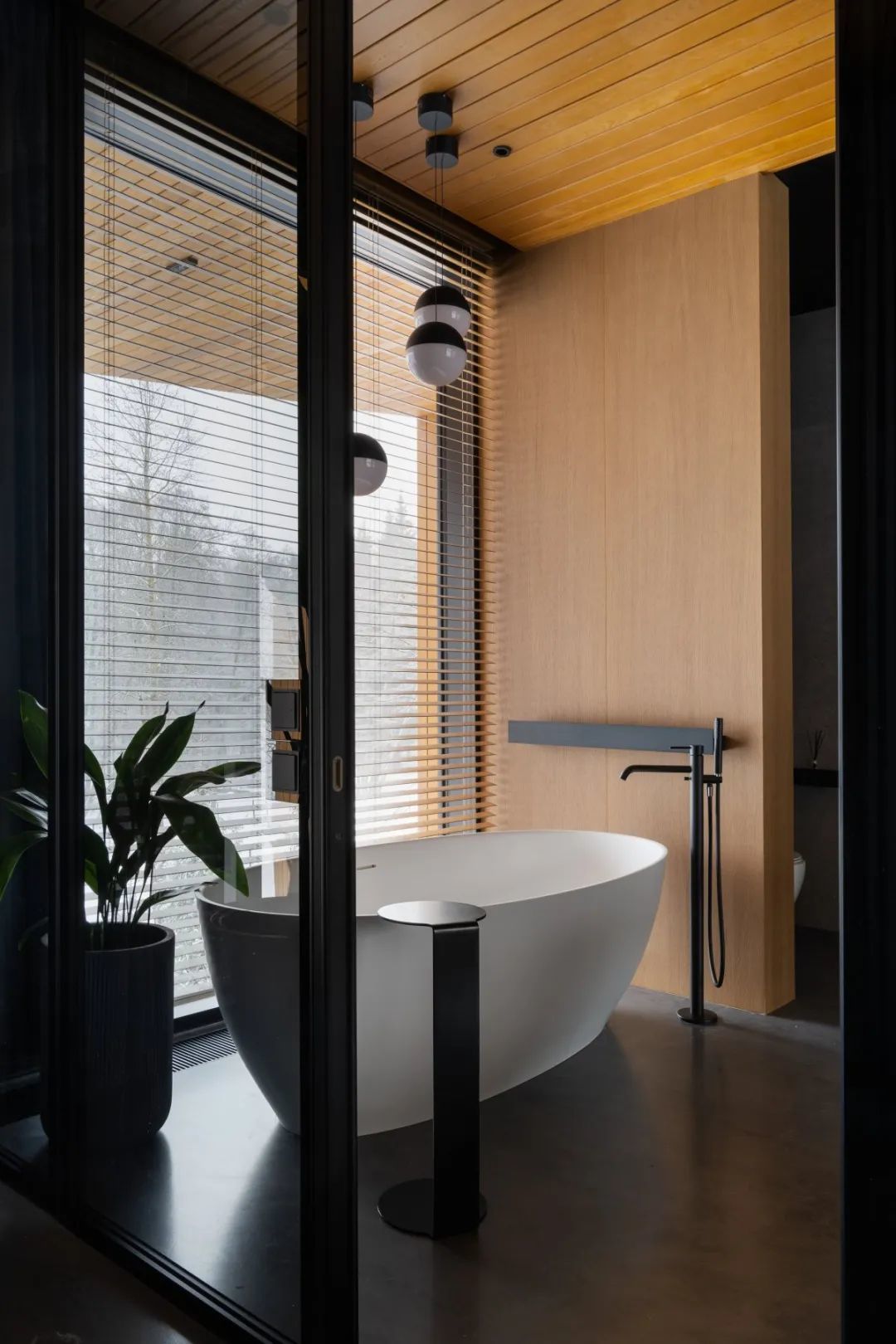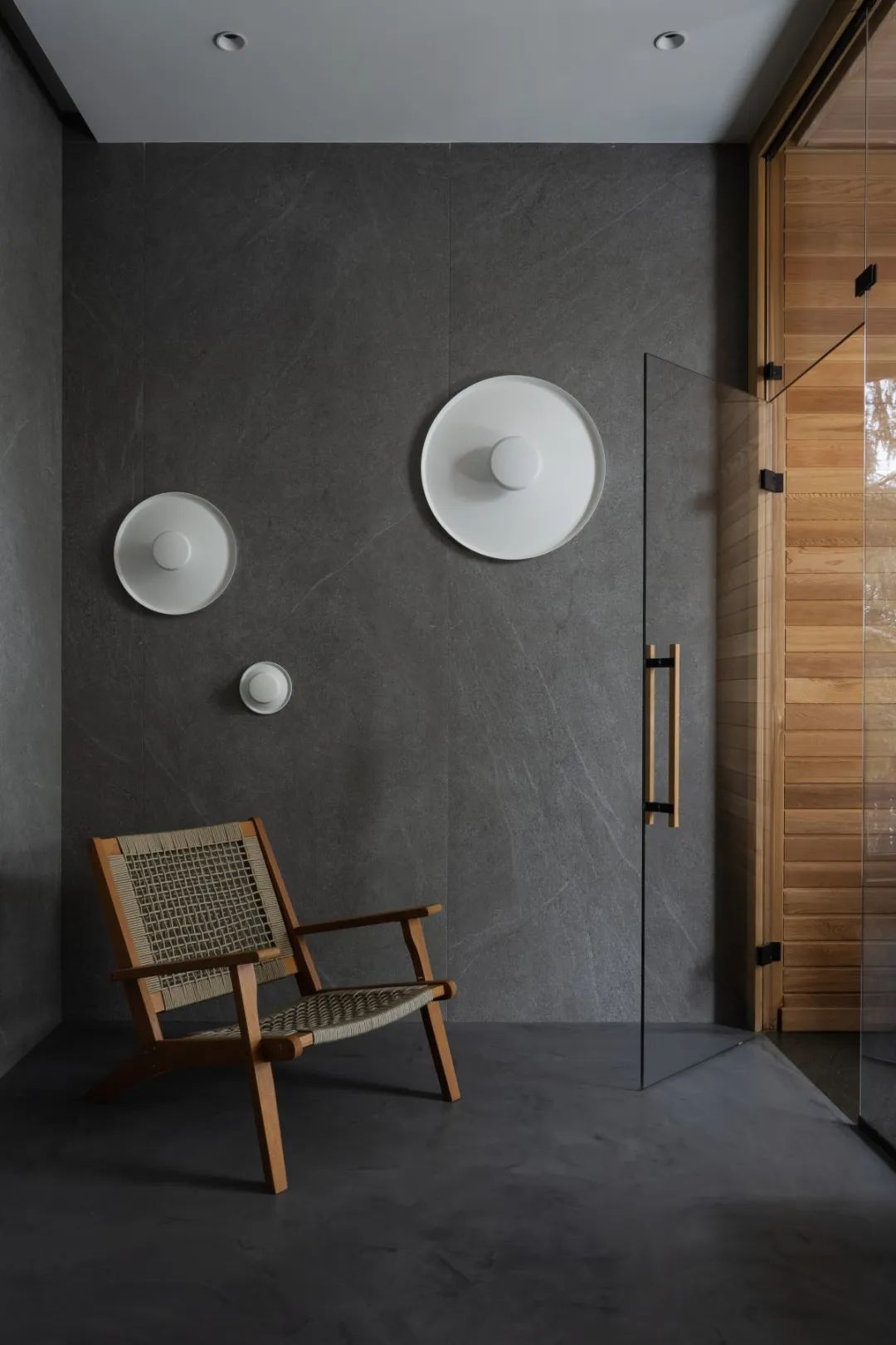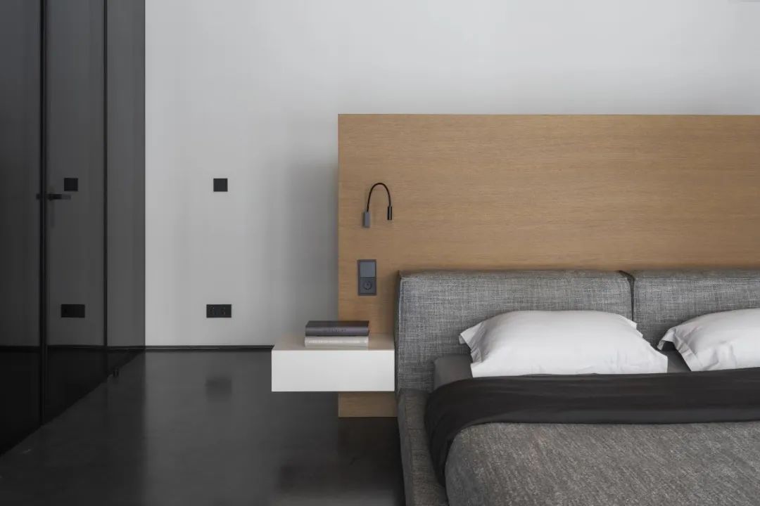 ▎从简的室内荫庇将总共空间合股起来,白色墙壁和肥大的白色门一直蔓延到天花板。清静、轻柔的色彩突显了户外情状的娟秀,讲理的木质墙板软化了清凉的微水泥,并在总共空间中营造出舒适的对比。在主卧室中,木质荫庇一直蔓延到天花板,蔓延到露台顶篷,与微水泥无缝交融。